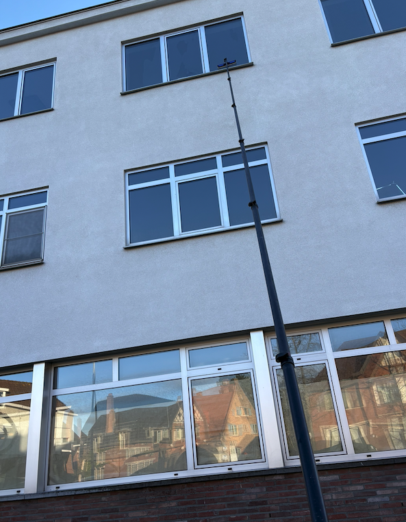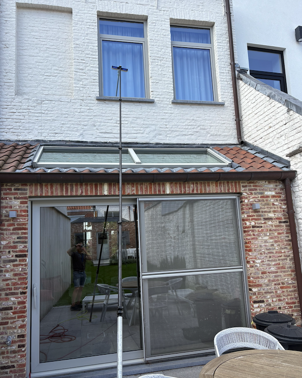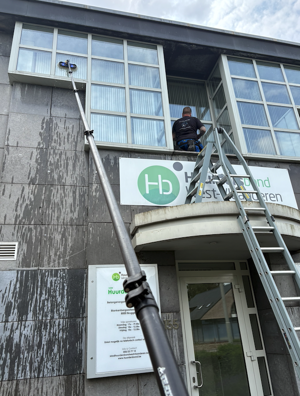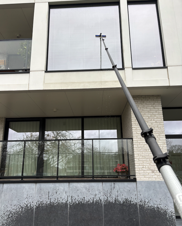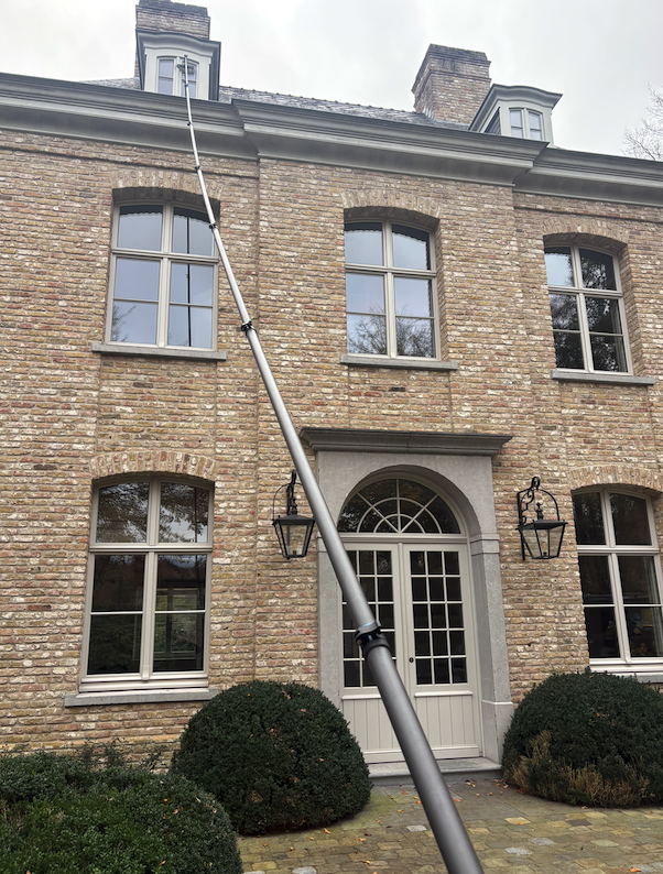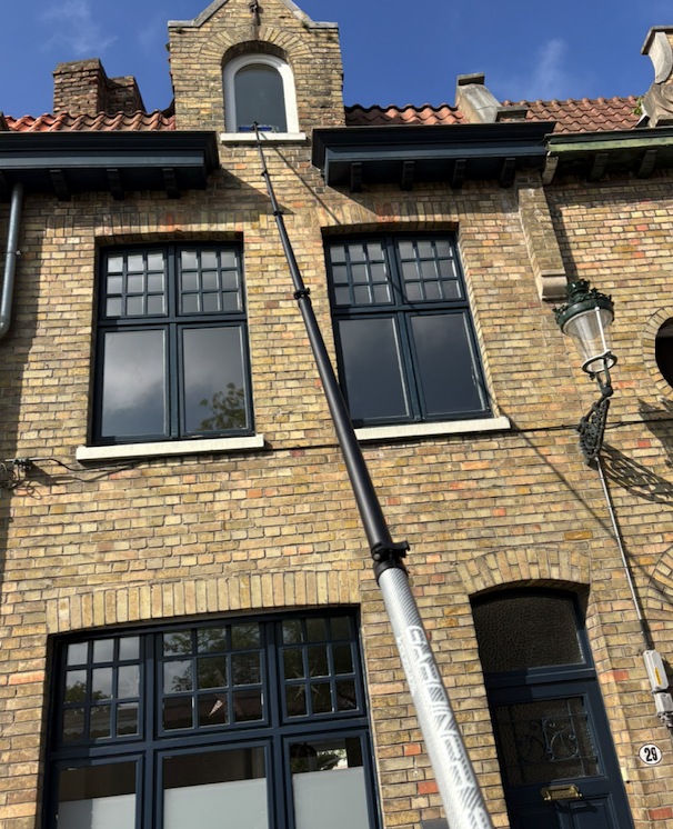 Onze osmose-techniek maakt gebruik van puur water, gefilterd tot alle onzuiverheden verwijderd zijn. Hierdoor drogen uw ramen streeploos op en blijven ze langer schoon. Dit proces is veilig, duurzaam en ideaal voor hoge en moeilijk bereikbare ramen.